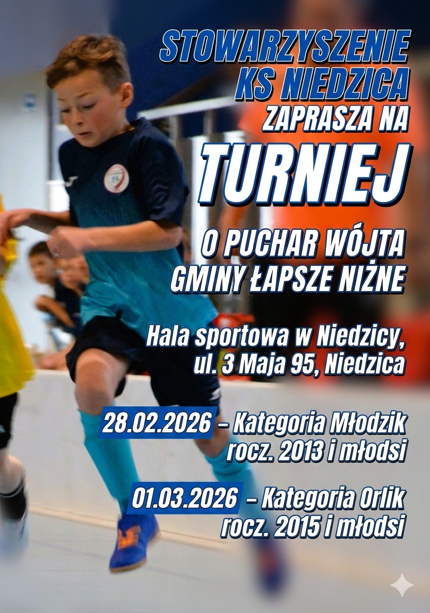 • • 01.03.2026 r. (niedziela) od godz. 8:00 – Turniej w kategorii Orlik